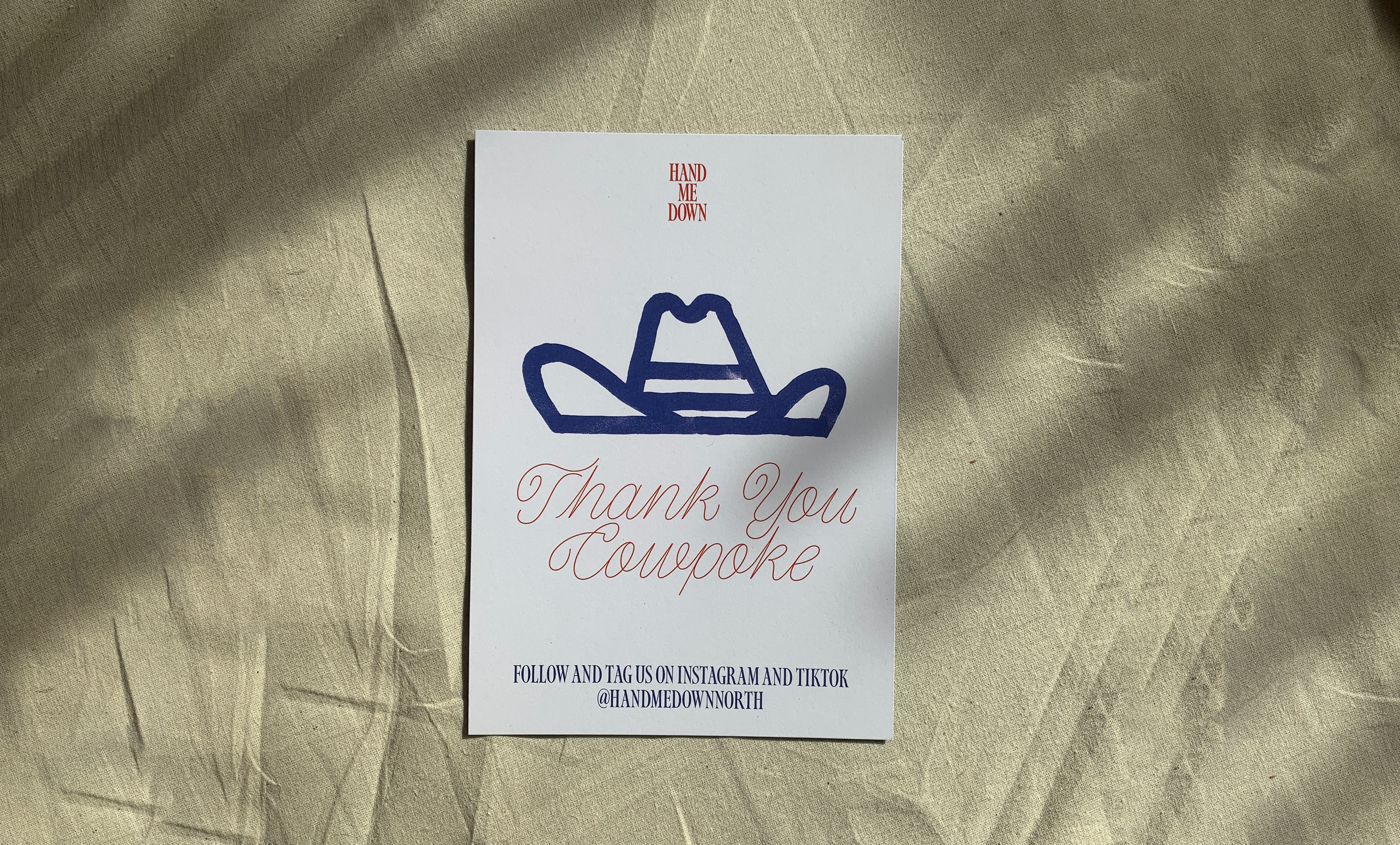 The logo, bold contrasting colours and chunky icons are used across simple web and print formats. The illustration technique can easily be adapted to be used across all the different themed collections - for example a cowboy hat for the first drop - The Western.