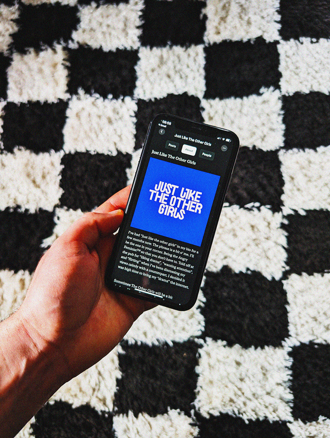 Custom logotype for feminist news letter "Just Like The Other Girls". The logo was used across Substack and social media.